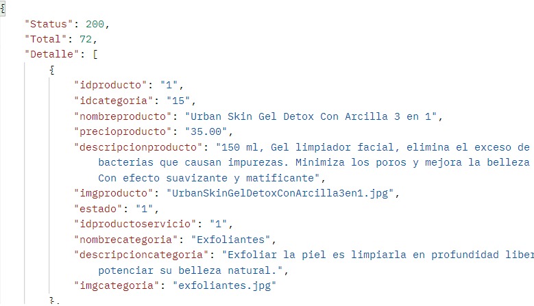 El resultado de la consulta de todos los productos debería ser como se muestra en la siguiente imagen: