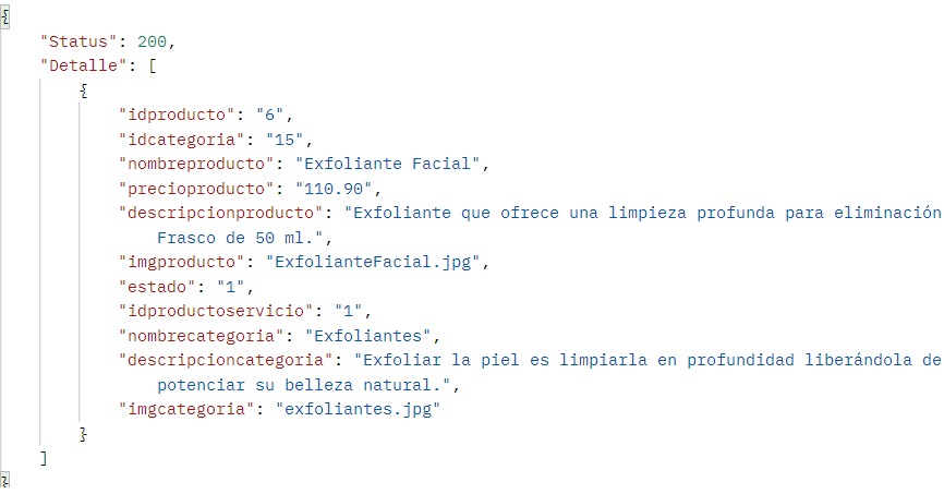 El resultado de la consulta de un producto en particular debería ser como se muestra en la siguiente imagen:
